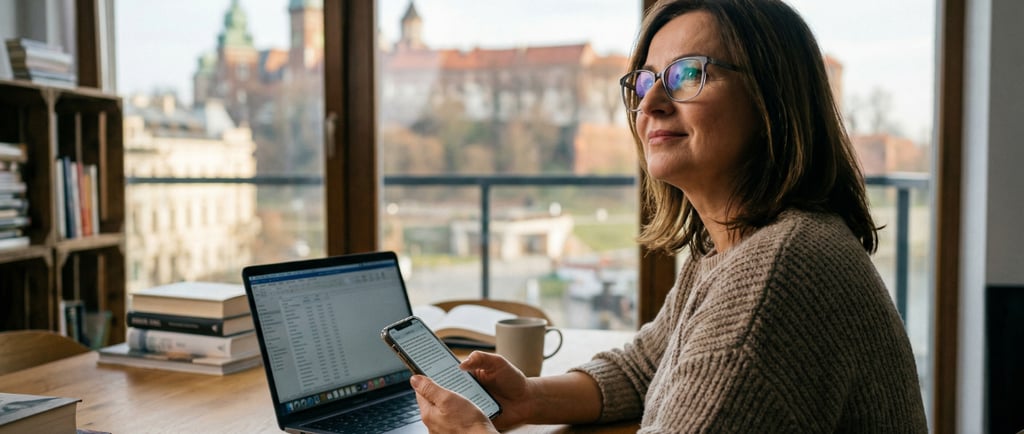 Aktywnie ćwicz wzrok na różnych dystansach – celowe ćwiczenia przyspieszają adaptację. Poświęć kilka minut dziennie na świadome przełączanie wzroku między odległościami: czytaj gazetę, spójrz na ekran komputera (widzenie pośrednie), potem na odległy obiekt. Zwracaj uwagę, jak dostosowujesz pozycję głowy. Ćwicz również chodzenie, szczególnie po schodach – patrz prosto, a schodząc, opuszczaj głowę, używając dolnej strefy soczewki.